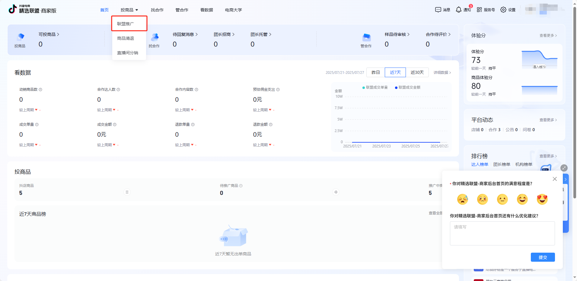 如果是个体店、企业店或者是旗舰店,是可以直接加入精选联盟的,但是如果想要在精选联盟里面推广产品是需要满足体验分70分及以上。