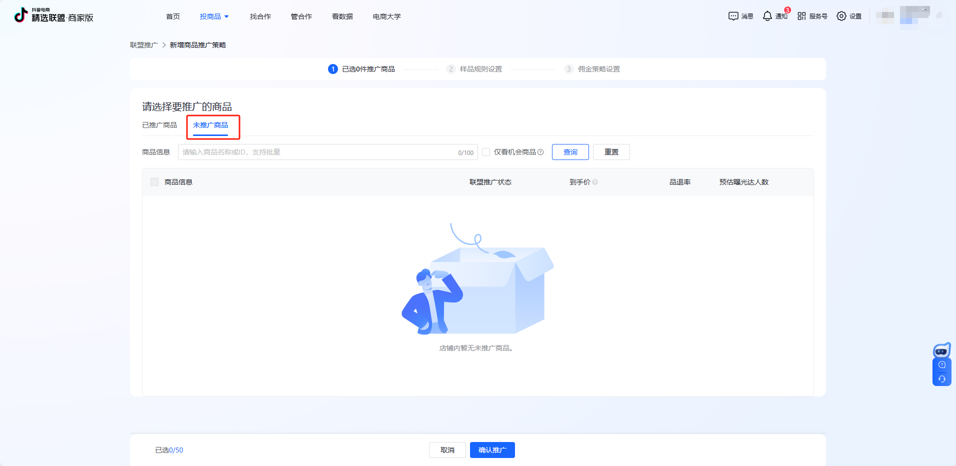 点击新建推广策略,点击【未推广产品】