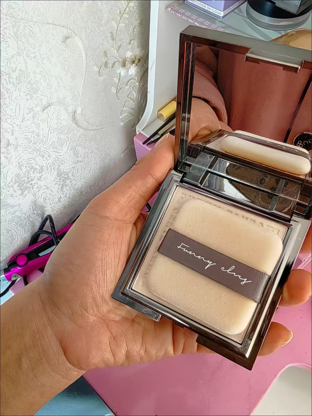 粉质细腻到像烟雾一般☁️,上脸是高级柔焦雾面妆效,瞬间磨平毛孔、隐匿油光,却不会厚重假面,连泛红、痘印都能自然柔化,清透感拉满。搭配附赠的双面植绒粉扑,取粉均匀不飞粉,轻轻按压就能牢牢定妆,新手也能轻松打造干净妆面。